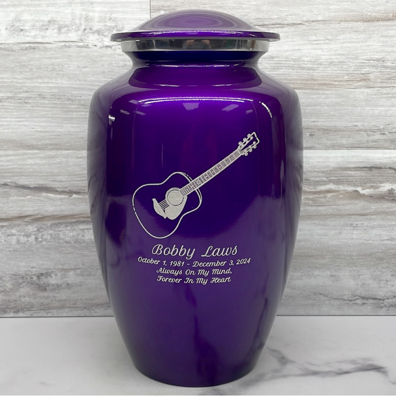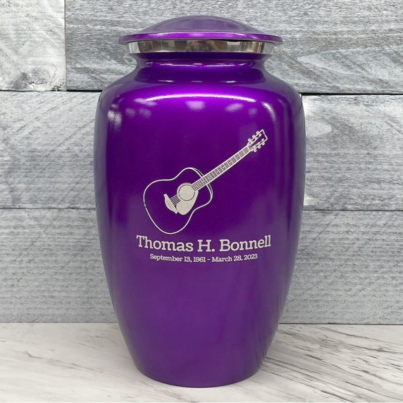 Acoustic Guitar Cremation Urn - Purple Luster
