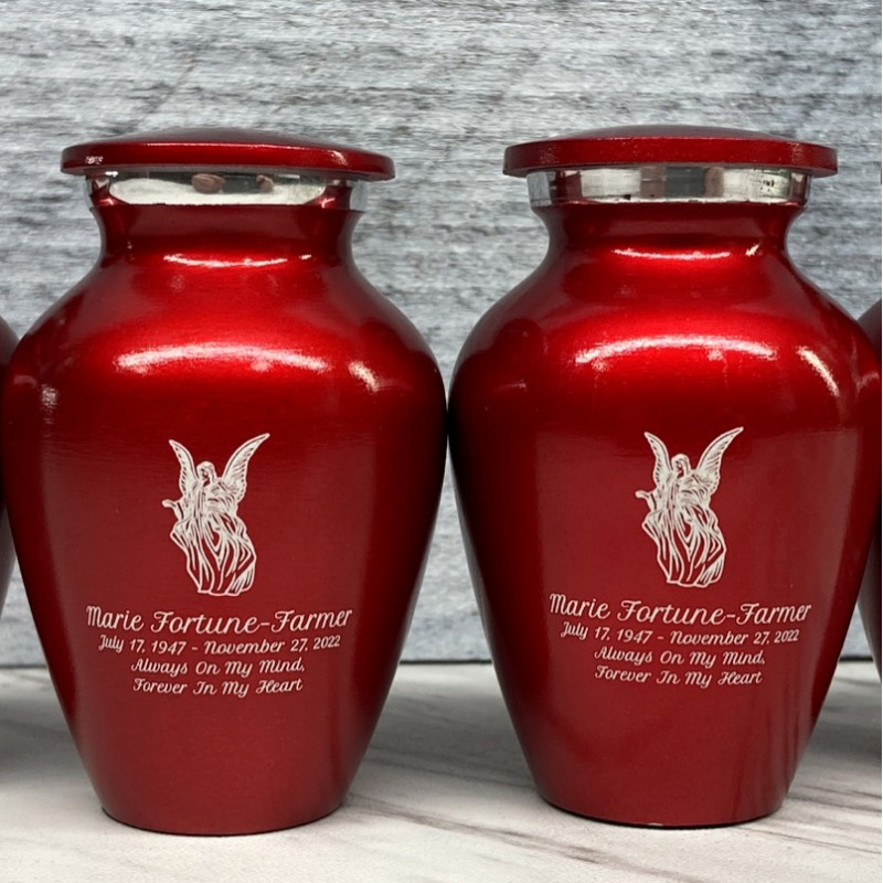 Angel Keepsake Urn - Midnight Blue Angel Keepsake Urn - Gunmetal Gray Angel Keepsake Urn - Purple Luster Angel Keepsake Urn - Shamrock GreenSizes