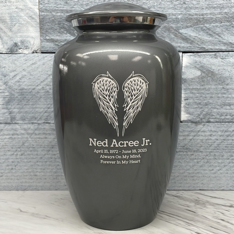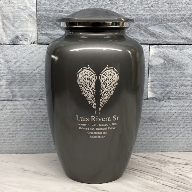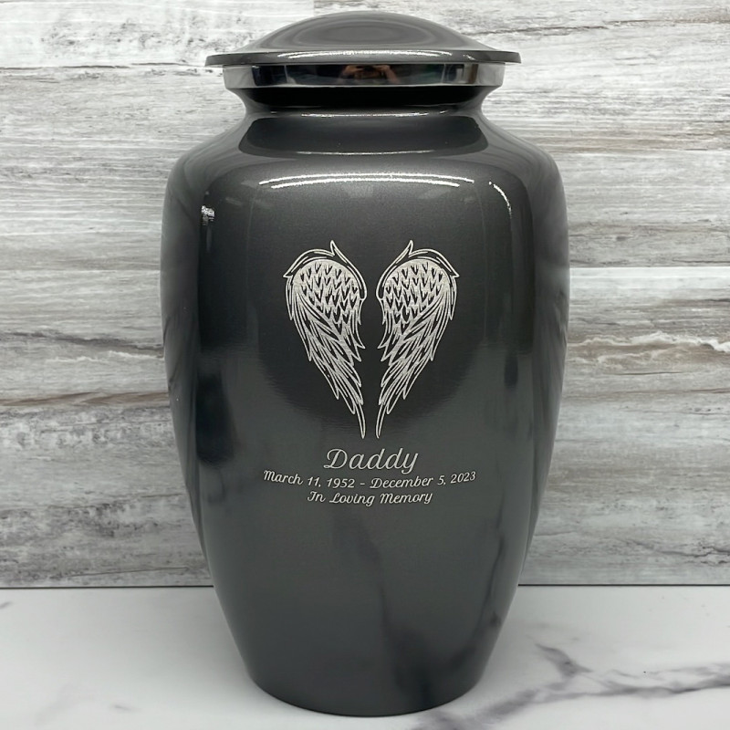 Our Angel Wings Urn in Gunmetal Gray is the perfect expression and resting place for the devout Christian in life. The neutral color of the urn allows artwork and other engravings to catch the eye when displayed in your home.