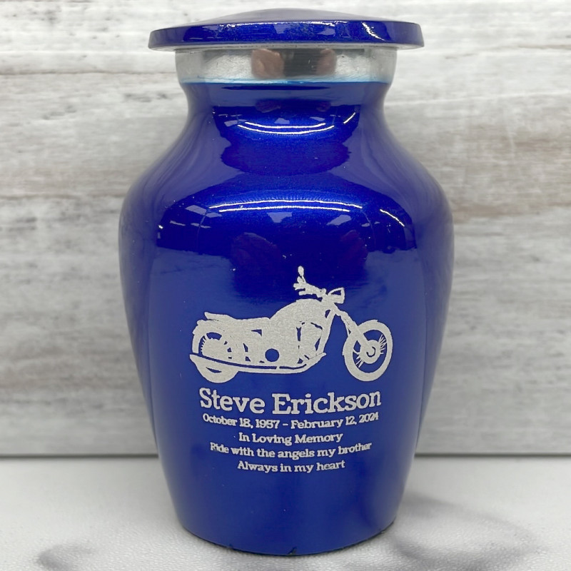 Choose an engraved keepsake urn to create an intimate and personal memorial for family members or close friends. Bold, attractive colors offer sharp contrast with the engraved text and artwork.