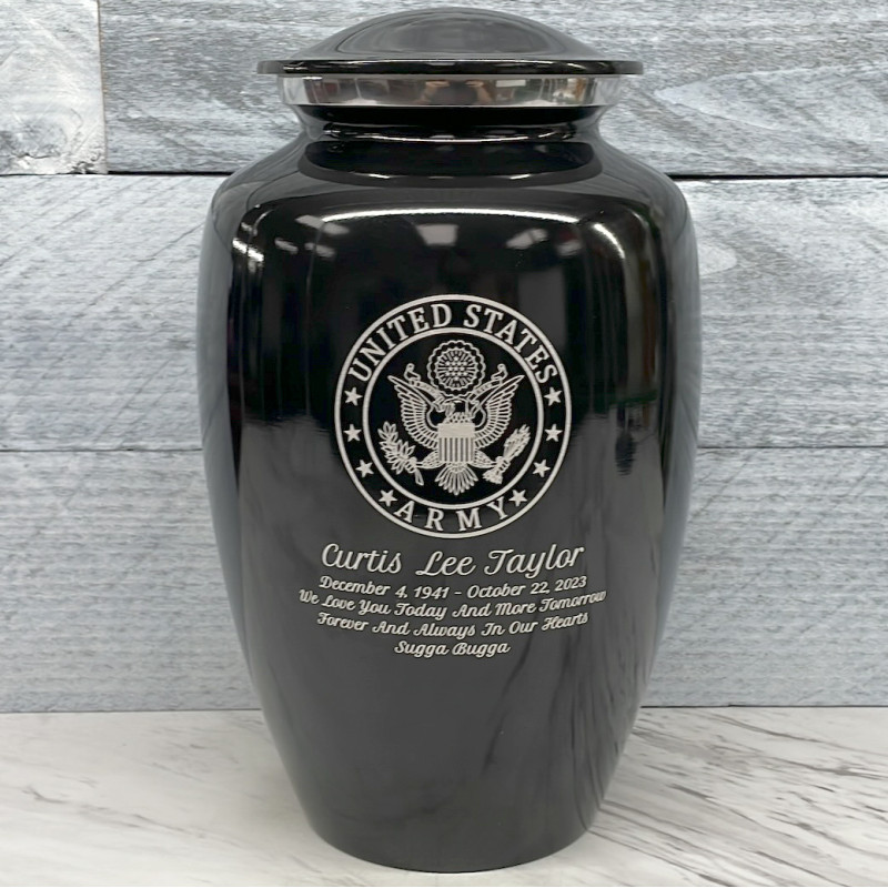 Army Cremation Urn - Midnight Blue Army Cremation Urn - Gunmetal Gray Army Cremation Urn - Purple Luster Army Cremation Urn - Shamrock Green Army Cremation Urn - Ruby RedArmy Cremation Urn - Jet Black