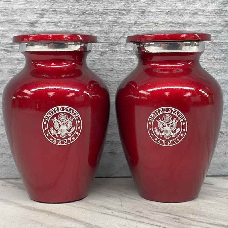 Army Keepsake Urn - Midnight Blue Army Keepsake Urn - Gunmetal Gray Army Keepsake Urn - Purple Luster Army Keepsake Urn - Shamrock GreenSizes