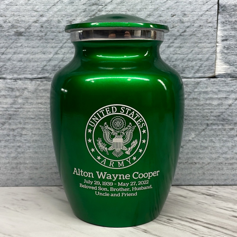My uncle was very proud of his military service with the army. He passed away in 2022 and I was troubled trying to find an urn for his ashes. I wanted it to be a fitting tribute to him and the life he led. When I saw this urn online, I was impressed that Green Meadow would personalize it for me. When it arrived, it was actually more beautiful in person! I believe my Uncle Wayne would be pleased with my choice. I certainly am.