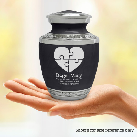 Select Autism Puzzle Sharing Urn - Ebony Black to create a personal memorial that is a step larger than a keepsake urn but more petite than a full size urn. Bold, attractive colors offer sharp contrast with the engraved text and detailed artwork.