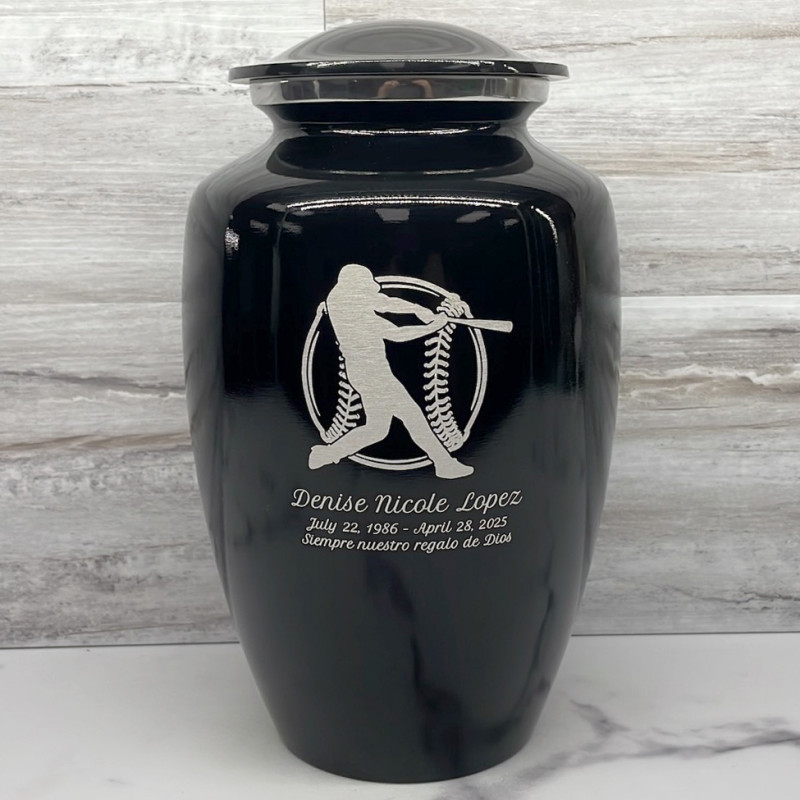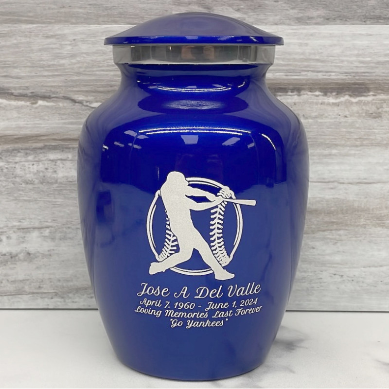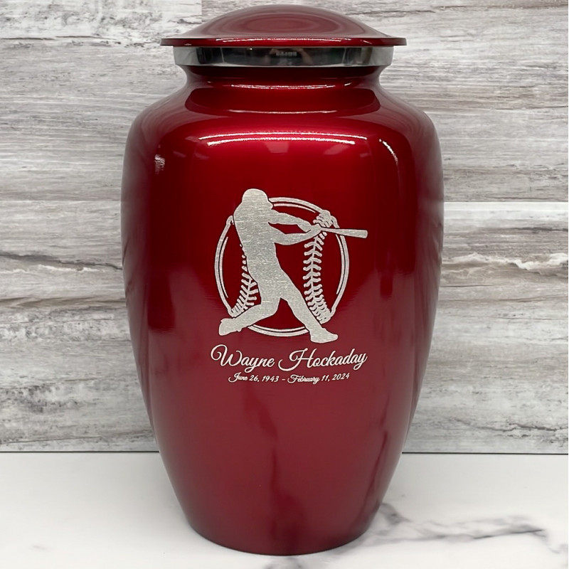 Choose an engraved individual cremation urn to create a beautiful memorial that is sized to hold the entire remains of any adult. Bold, attractive colors offer sharp contrast with the engraved text and detailed artwork.