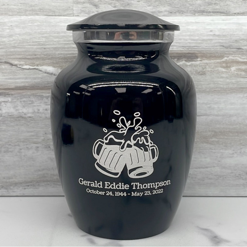 Select a Beer Sharing Urn to create a personal memorial that is a step larger than a keepsake urn but more petite than a full size urn. Bold, attractive colors offer sharp contrast with the engraved text and detailed artwork.