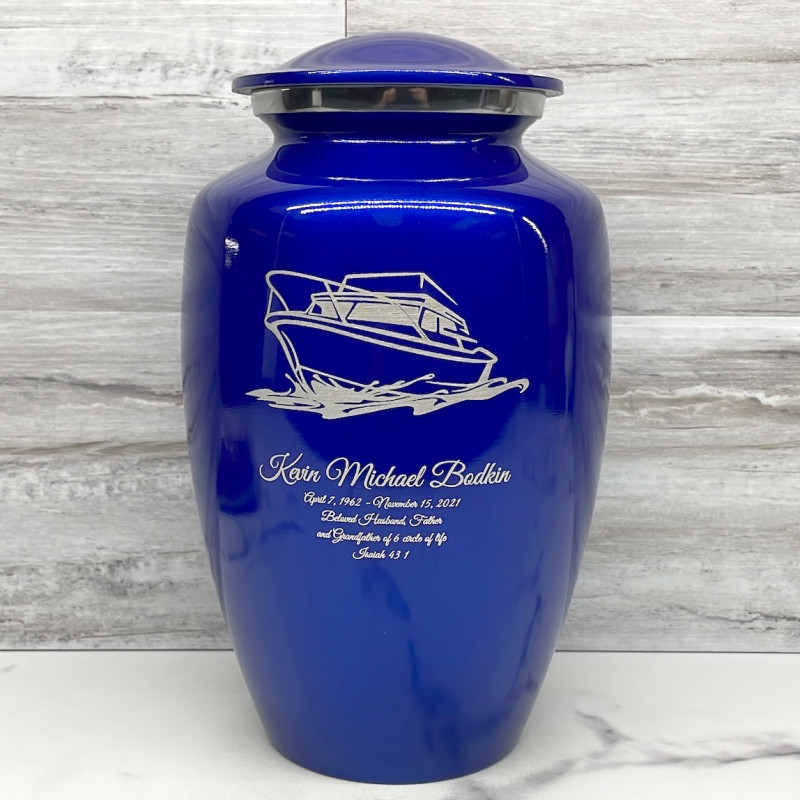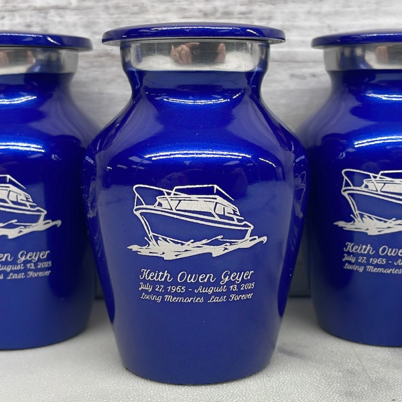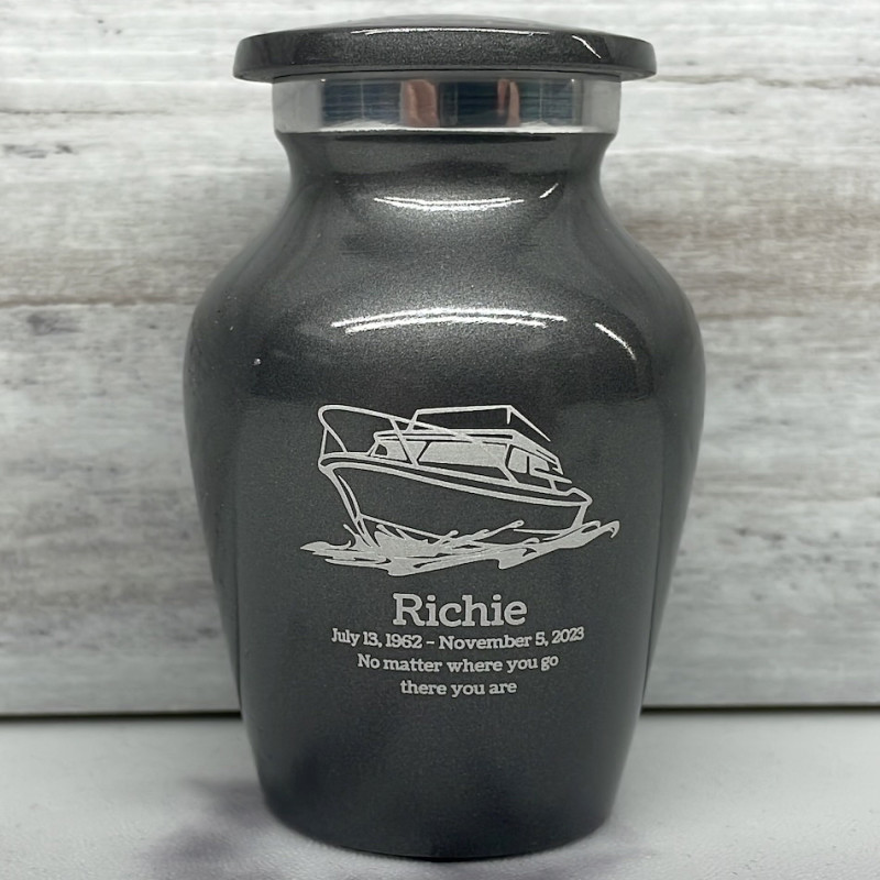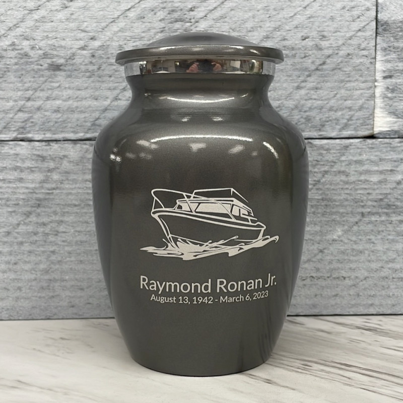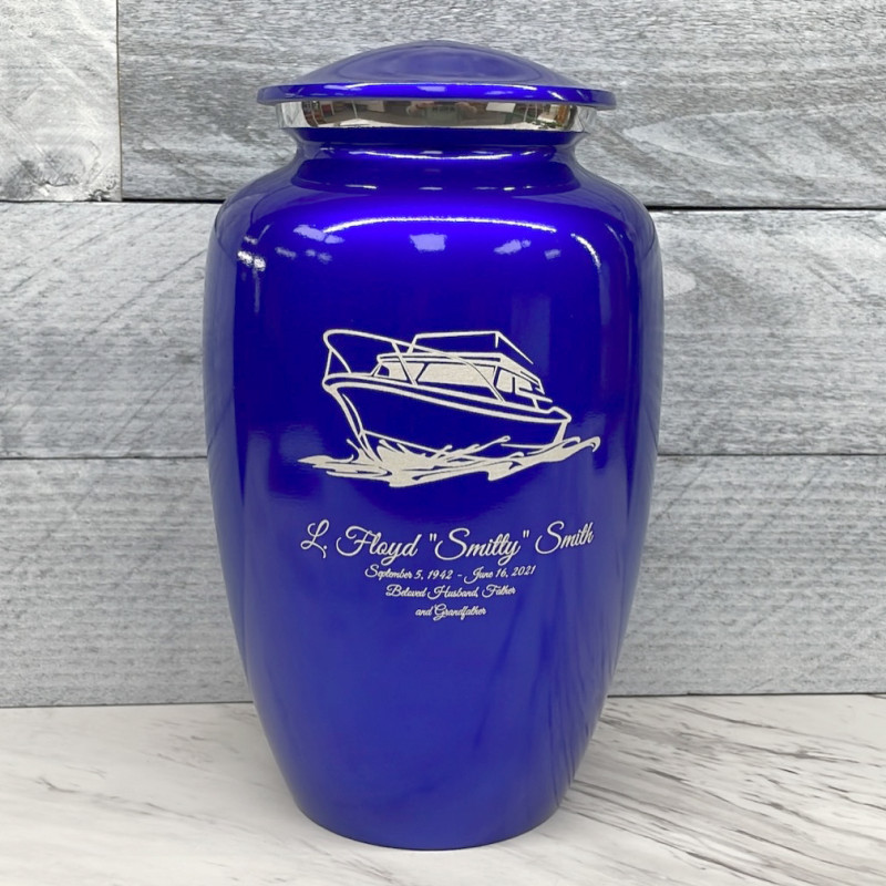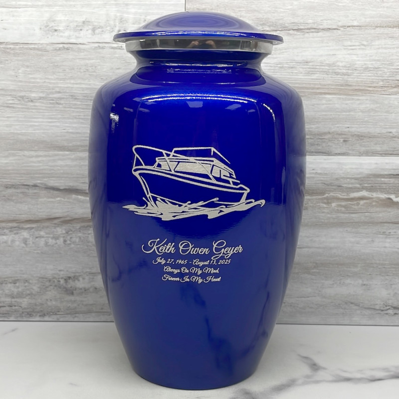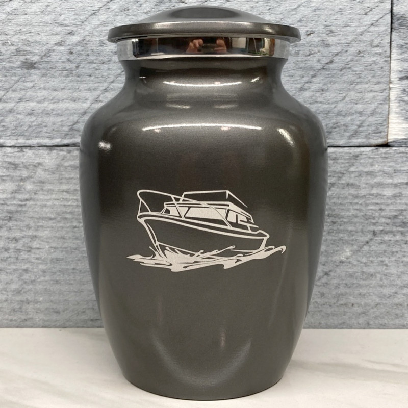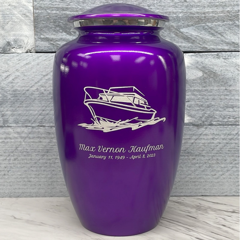 Boat Sharing Urn - Midnight Blue Boat Sharing Urn - Gunmetal Gray Boat Sharing Urn - Purple Luster Boat Sharing Urn - Shamrock GreenBoat Sharing Urn - Ruby Red