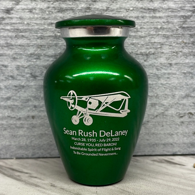 Bush Plane Keepsake Urn - Midnight Blue Bush Plane Keepsake Urn - Gunmetal Gray Bush Plane Keepsake Urn - Purple LusterSizes