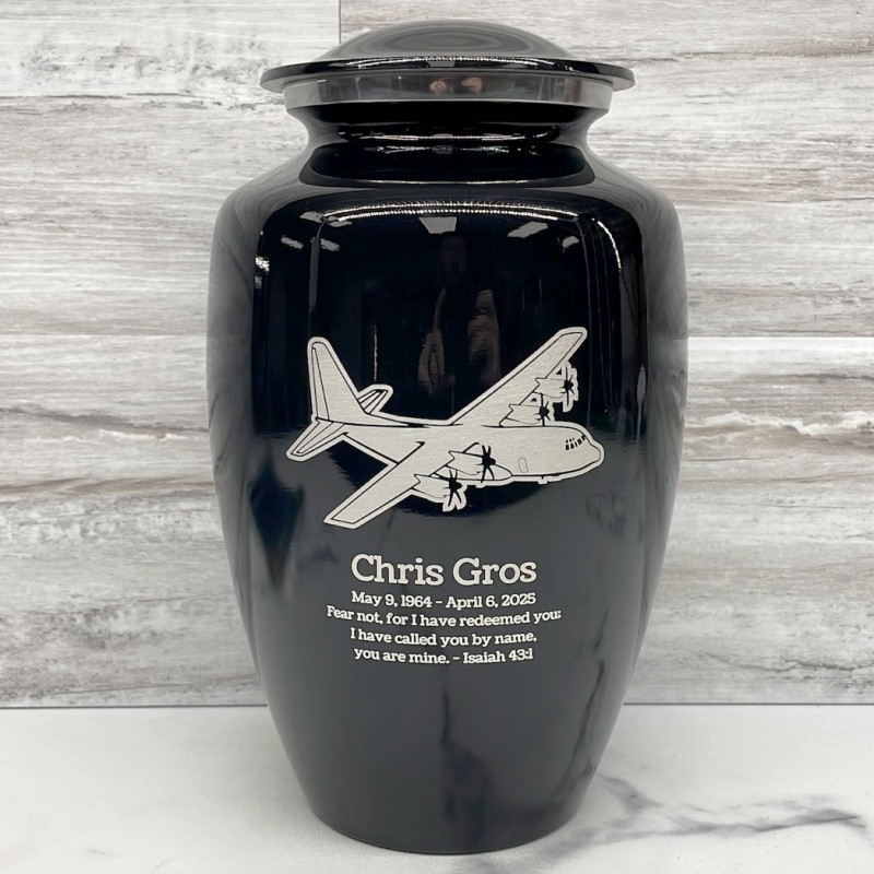 C130 Plane Cremation Urn - Jet Black
