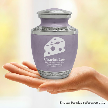 Select Cheese Wedge Sharing Urn - Regal Purple to create a personal memorial that is a step larger than a keepsake urn but more petite than a full size urn. Bold, attractive colors offer sharp contrast with the engraved text and detailed artwork.