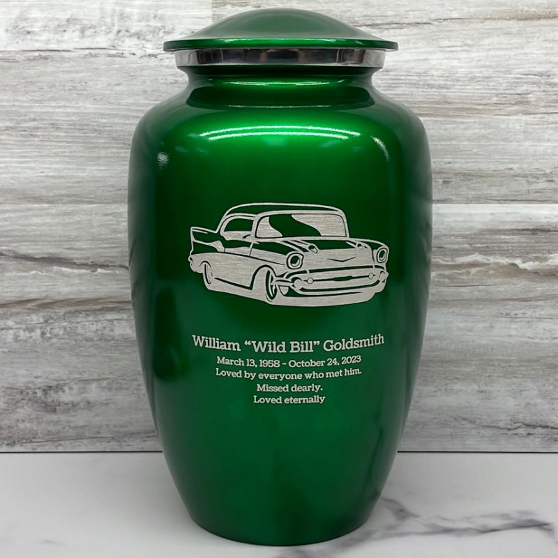 Choose the Shamrock Green Classic Car Cremation Urn to give your loved one a handsome and meaningful place to rest.