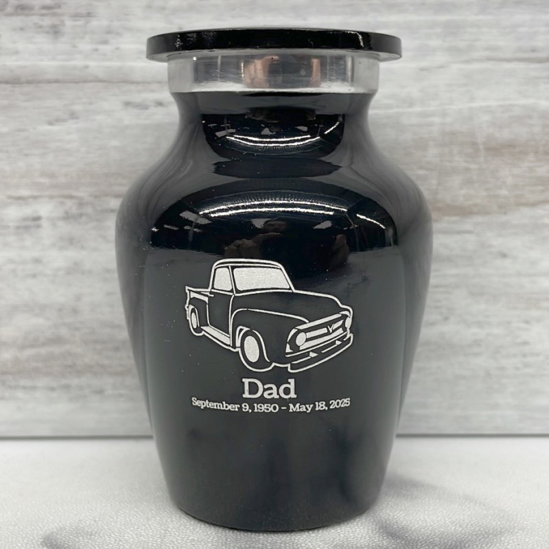 Choose a Classic Stepside Truck Keepsake Urn to create an intimate and personal memorial for family members or close friends. Bold, attractive colors offer sharp contrast with the engraved text and artwork.