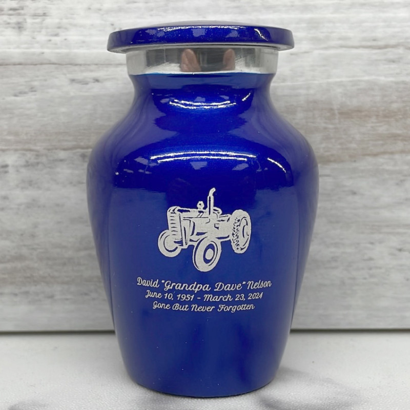 Choose an engraved keepsake urn to create an intimate and personal memorial for family members or close friends. Bold, attractive colors offer sharp contrast with the engraved text and artwork.