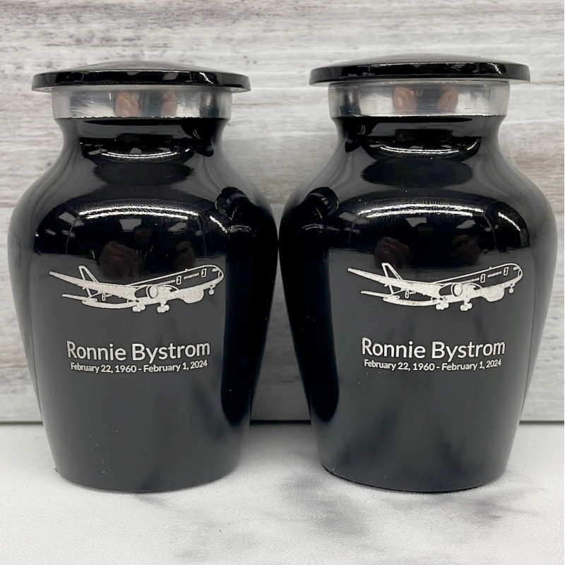Commercial Airplane Keepsake Urn - Midnight Blue Commercial Airplane Keepsake Urn - Gunmetal Gray Commercial Airplane Keepsake Urn - Purple Luster Commercial Airplane Keepsake Urn - Shamrock Green Commercial Airplane Keepsake Urn - Ruby RedSizes