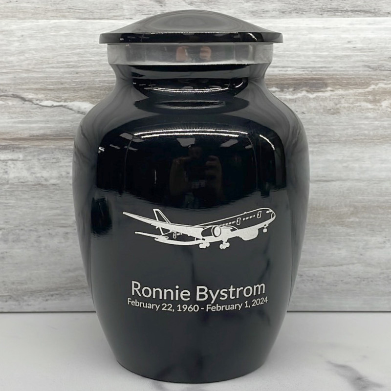Commercial Airplane Sharing Urn - Midnight Blue Commercial Airplane Sharing Urn - Gunmetal Gray Commercial Airplane Sharing Urn - Purple Luster Commercial Airplane Sharing Urn - Shamrock Green Commercial Airplane Sharing Urn - Ruby RedCommercial Airplane Sharing Urn - Jet Black