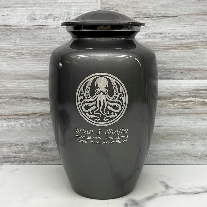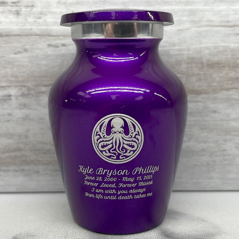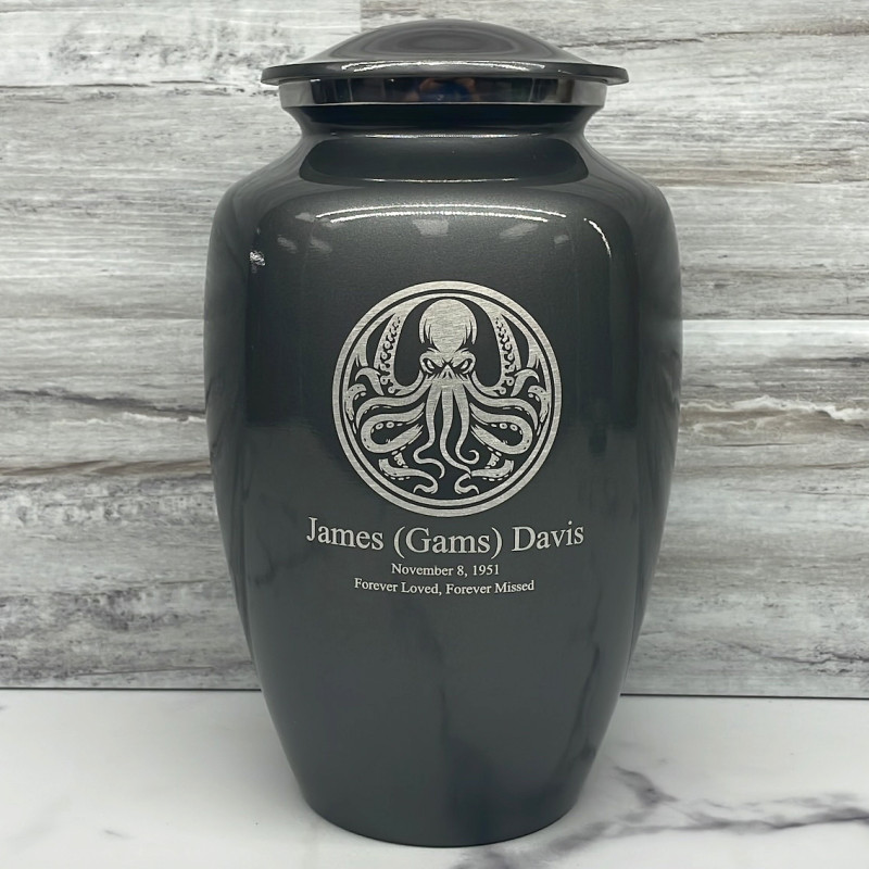 Choose a Cthulhu Keepsake Urn to create an intimate and personal memorial for family members or close friends. Bold, attractive colors offer sharp contrast with the engraved text and artwork.