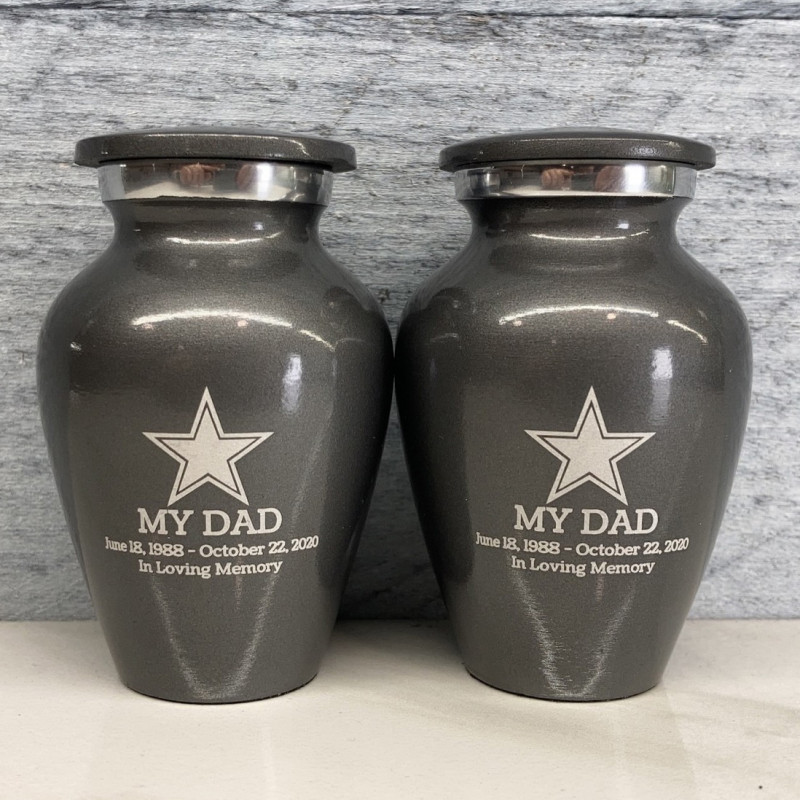Matching keepsakes and sharing size urns are available in a variety of colors so that family members and close friends can have a personal memorial. Free engraving previews and free shipping are offered on every engraved memorial.