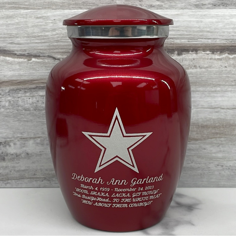 Dallas Star Sharing Urn - Midnight Blue Dallas Star Sharing Urn - Gunmetal Gray Dallas Star Sharing Urn - Purple Luster Dallas Star Sharing Urn - Shamrock GreenSizes