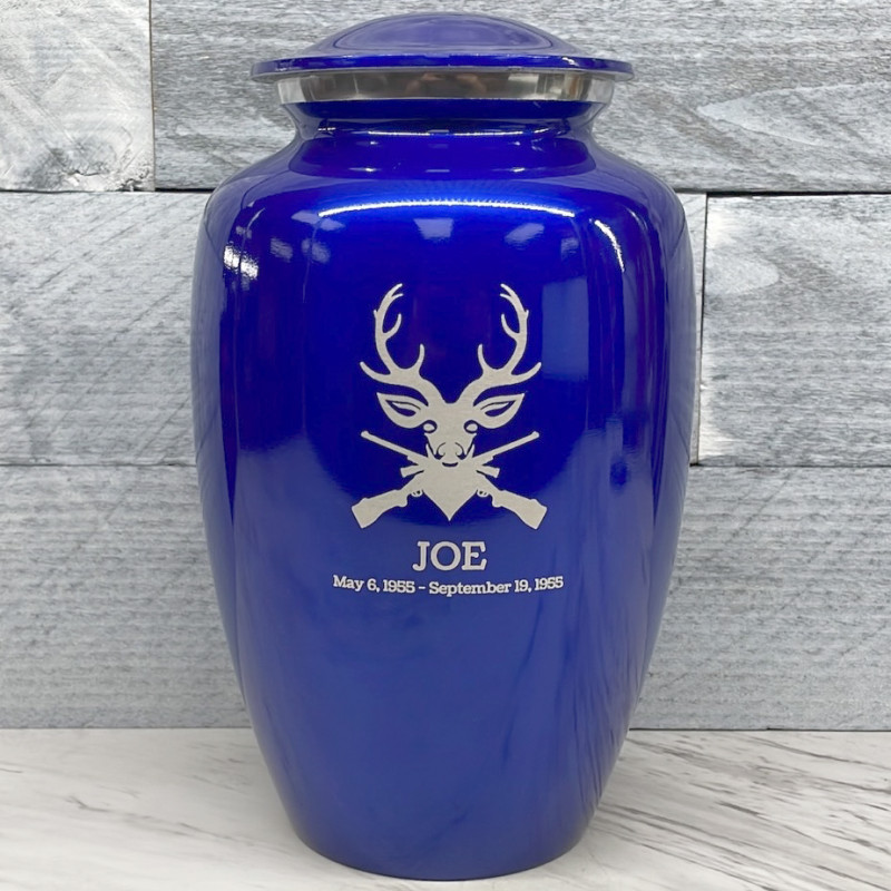 Choose an engraved individual cremation urn to create a beautiful memorial that is sized to hold the entire remains of any adult. Bold, attractive colors offer sharp contrast with the engraved text and detailed artwork.