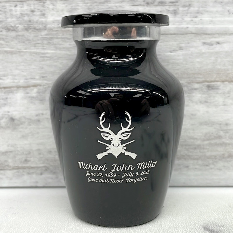 Deer Hunter Keepsake Urn - Midnight Blue Deer Hunter Keepsake Urn - Gunmetal Gray Deer Hunter Keepsake Urn - Purple Luster Deer Hunter Keepsake Urn - Shamrock Green Deer Hunter Keepsake Urn - Ruby RedSizes