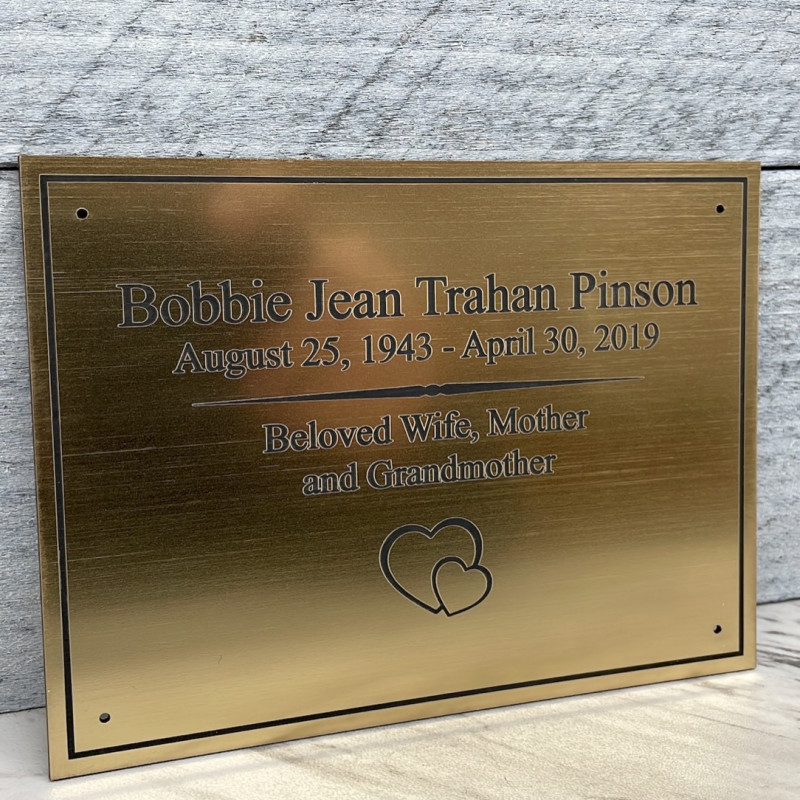 This brushed gold plate is designed specifically to be used for the DIY cremation urn. The plate is made from a durable attractive plastic that mimics the look of a brushed metal. Thickness of the material is 0.0625". Each plate has an adhesive lined back which can be used to attach the urn to a surface or optionally the plate can be configured to have 4 holes for small brad nails which are included when configured.