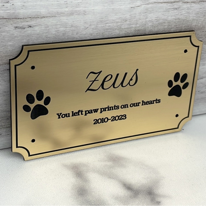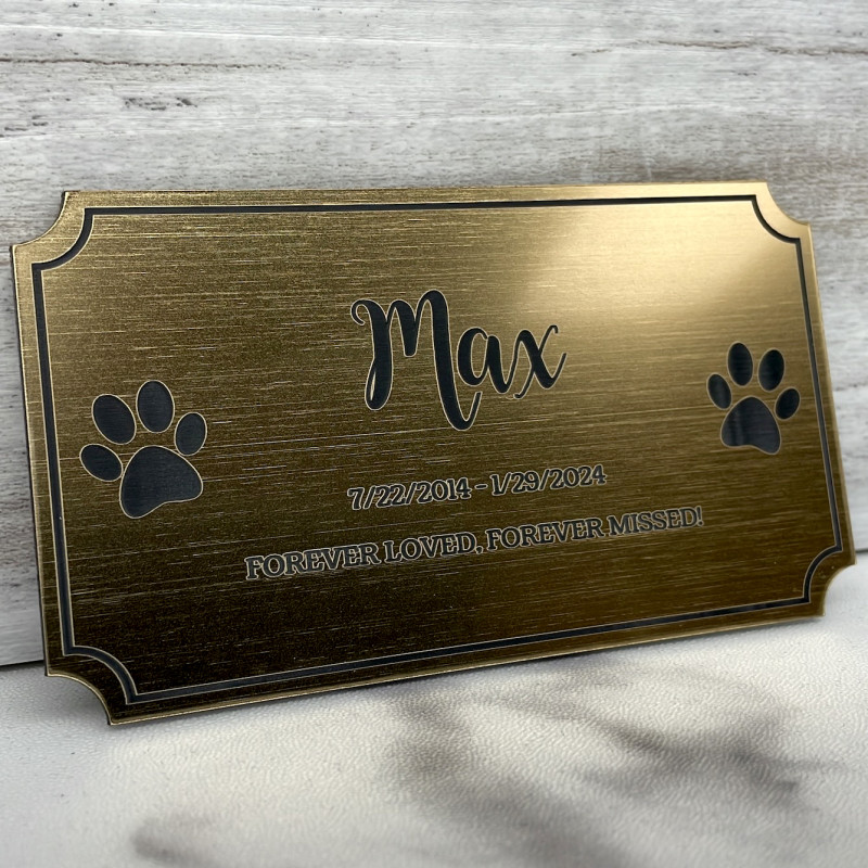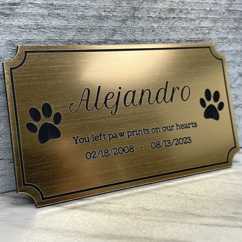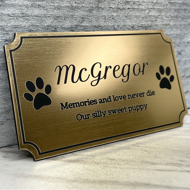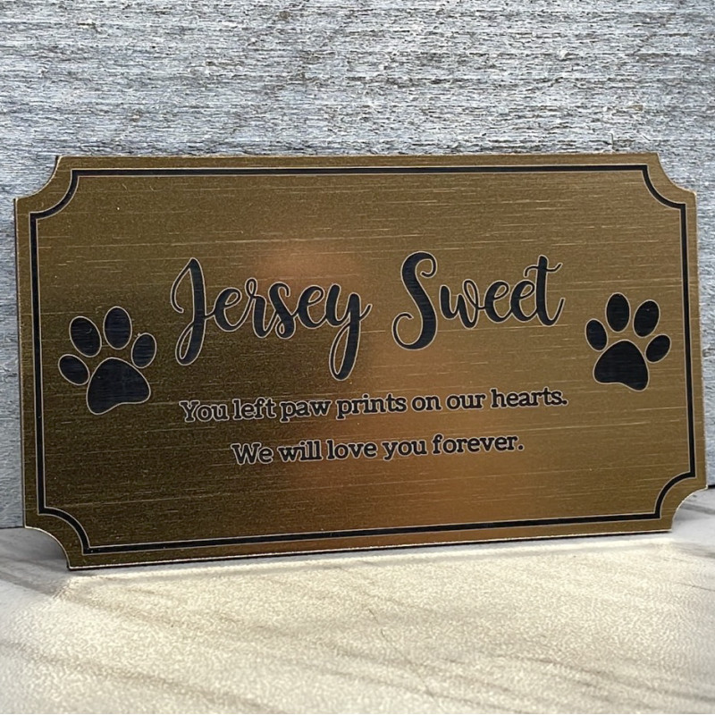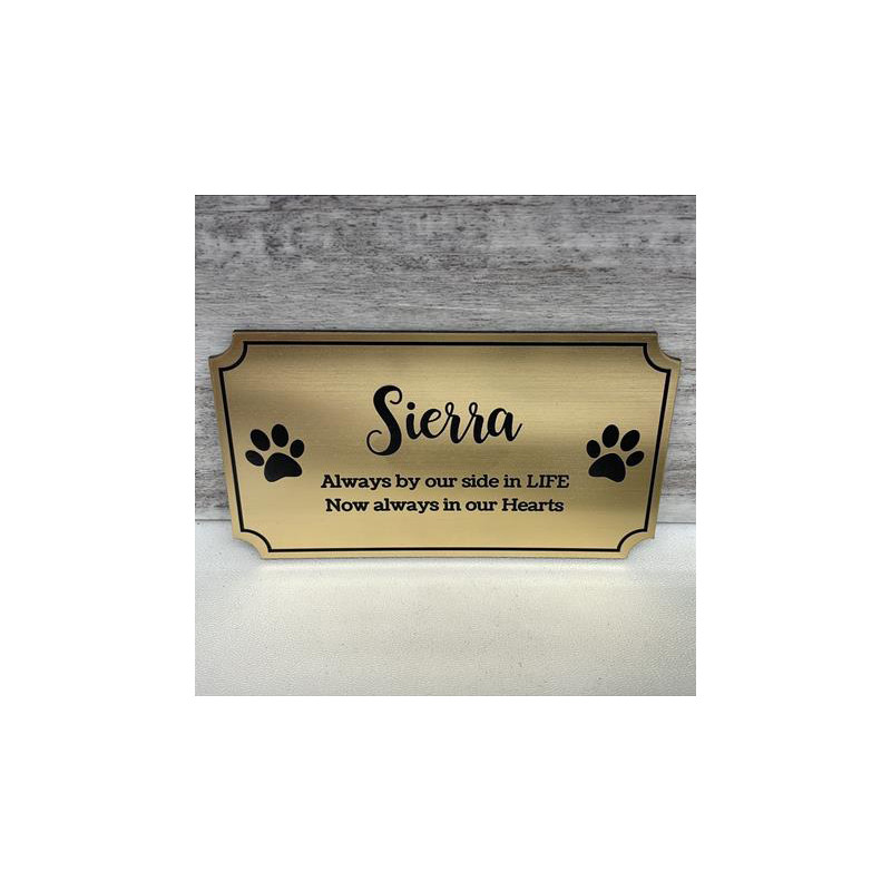 This brushed gold plate is designed specifically to be used for the DIY pet cremation urn. The plate is made from a durable attractive plastic that mimics the look of a brushed metal. Thickness of the material is 0.0625". Each plate has an adhesive lined back which can be used to attach the urn to a surface or optionally the plate can be configured to have 4 holes for small brad nails which are included when configured.