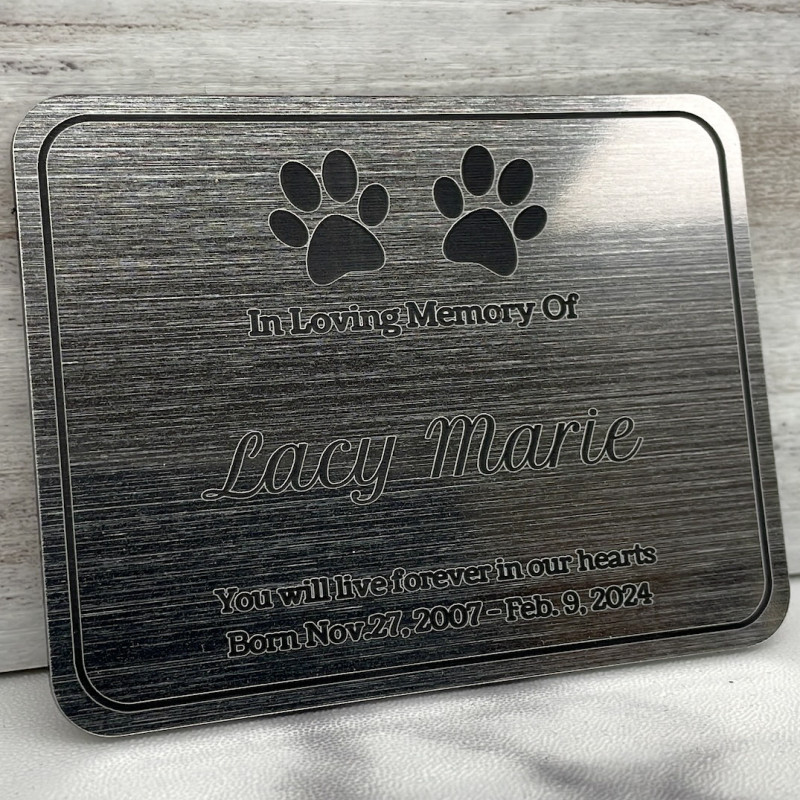 Purchased this for the last feral cat at my home that had passed away and been cremated. I wanted something special to put on the wood box she was returned to me in. I found this company on Google and purchased the engraved plate with her information. My furbabies are honored with this beautiful plate.