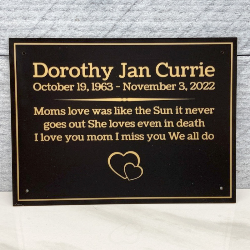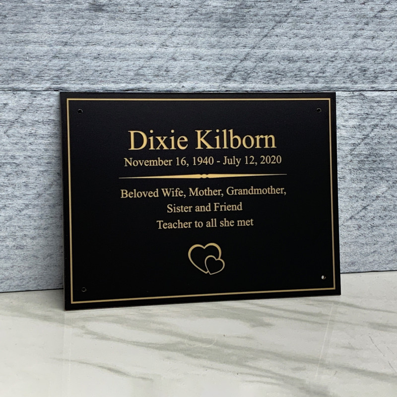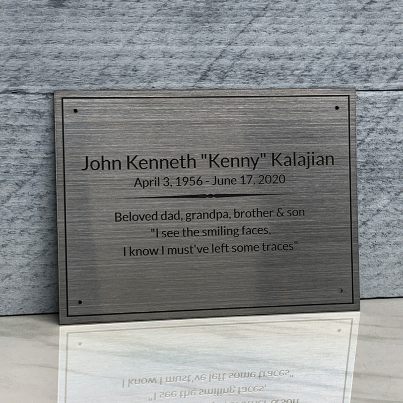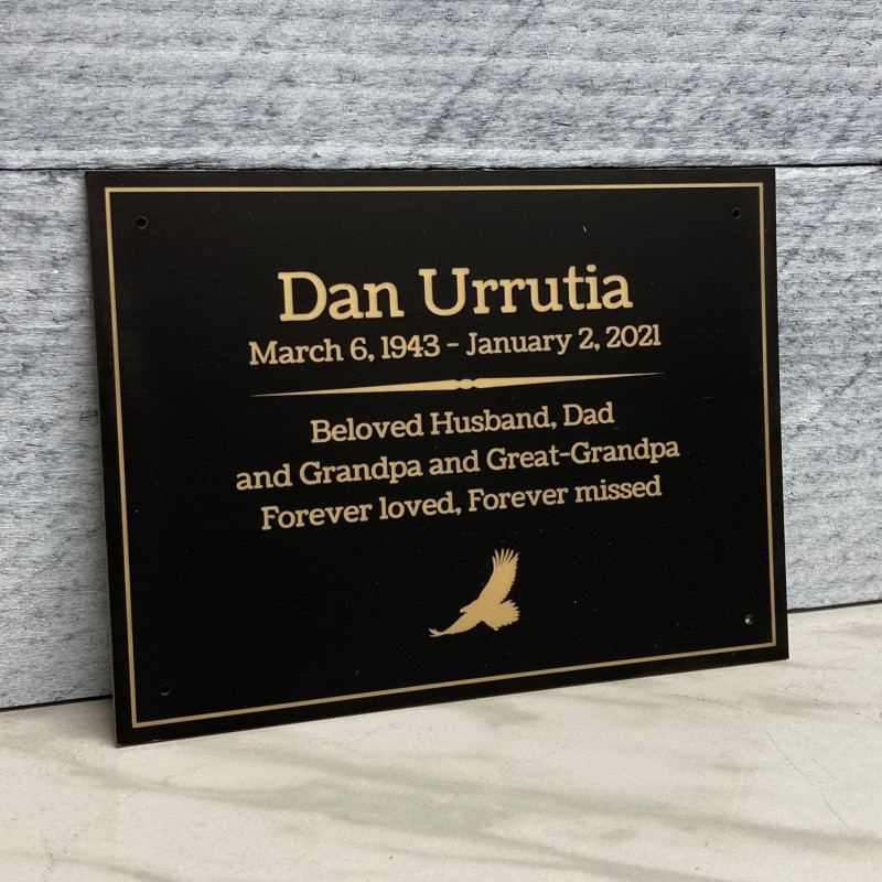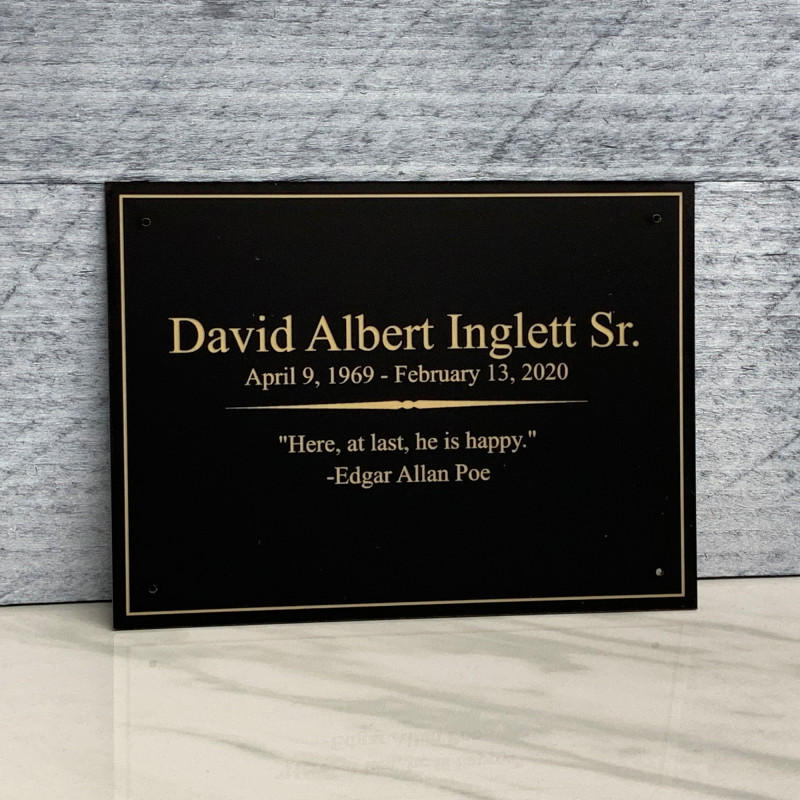 This matte black plate is designed specifically to be used for the DIY pet cremation urn. The plate is made from a durable attractive plastic. Thickness of the material is 0.0625". Each plate has an adhesive lined back which can be used to attach the urn to a surface or optionally the plate can be configured to have 4 holes for small brad nails which are included when configured.