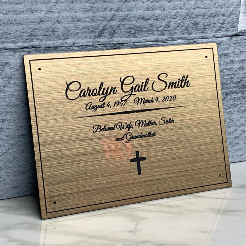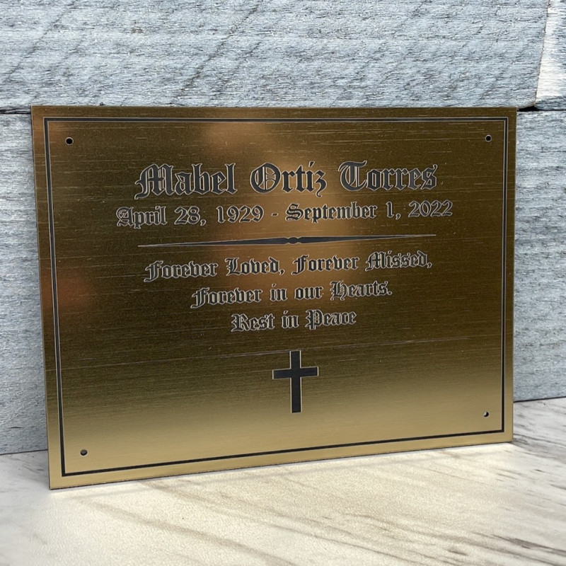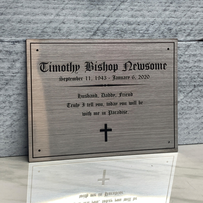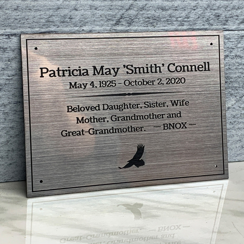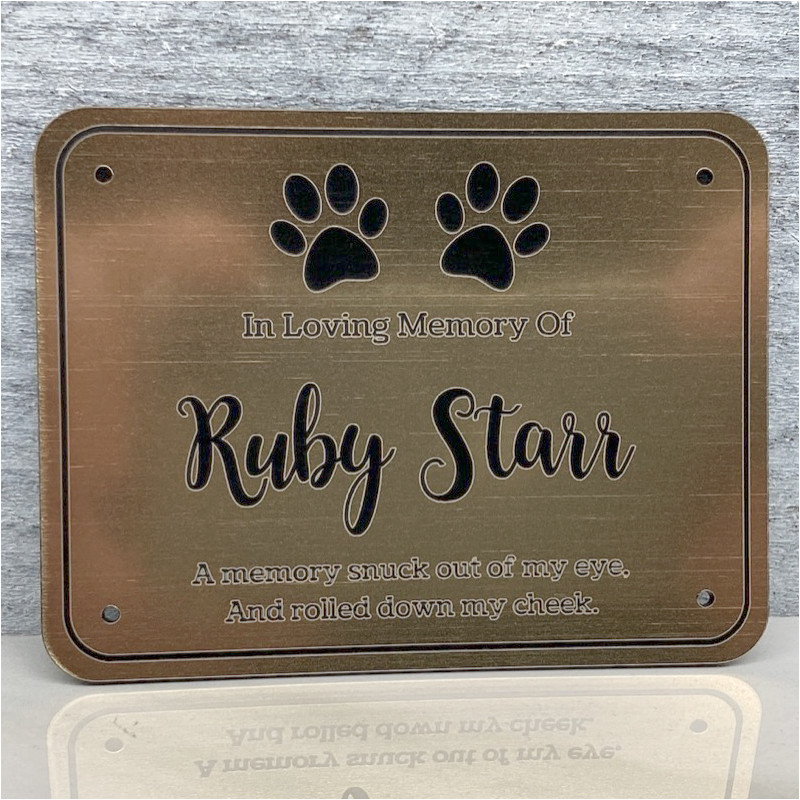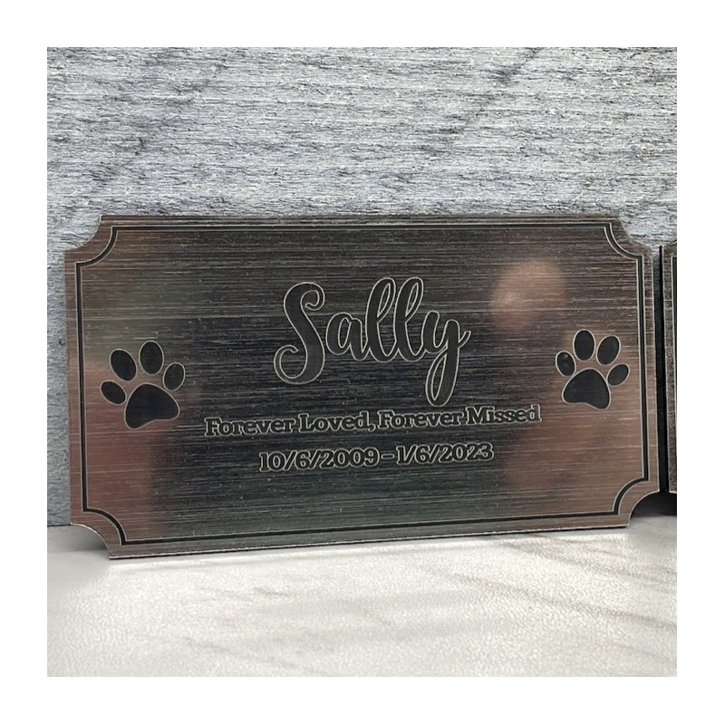 Plate is exactly what I wanted it to be! It was just as I designed it! The size is absolutely perfect to what is advertised. The adhesive on the back is really strong and it looks fantastic on the memorial for our dog