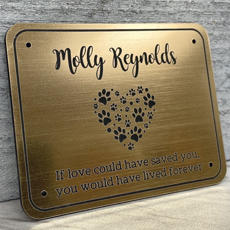 This brushed gold plate is designed specifically to be used for the DIY pet cremation urn. The plate is made from a durable attractive plastic that mimics the look of a brushed metal. Thickness of the material is 0.0625". Each plate has an adhesive lined back which can be used to attach the urn to a surface or optionally the plate can be configured to have 4 holes for small brad nails which are included when configured.