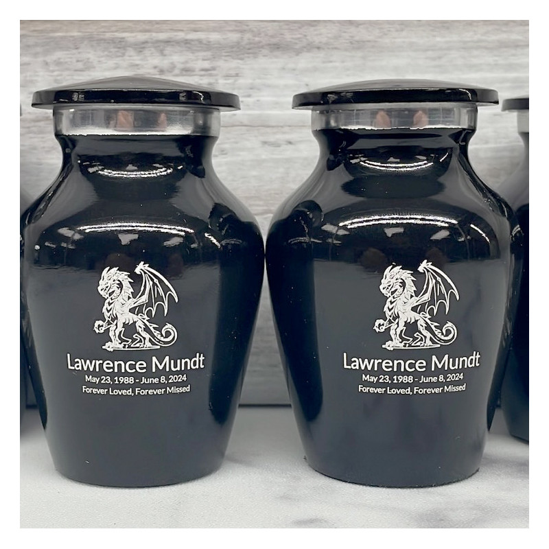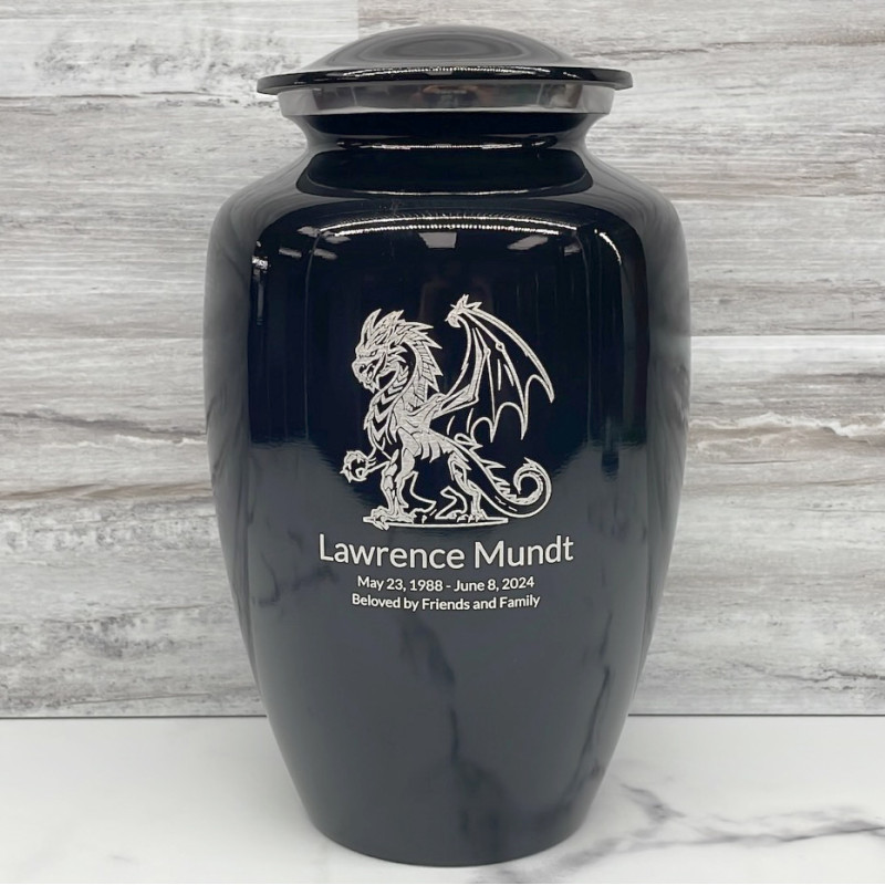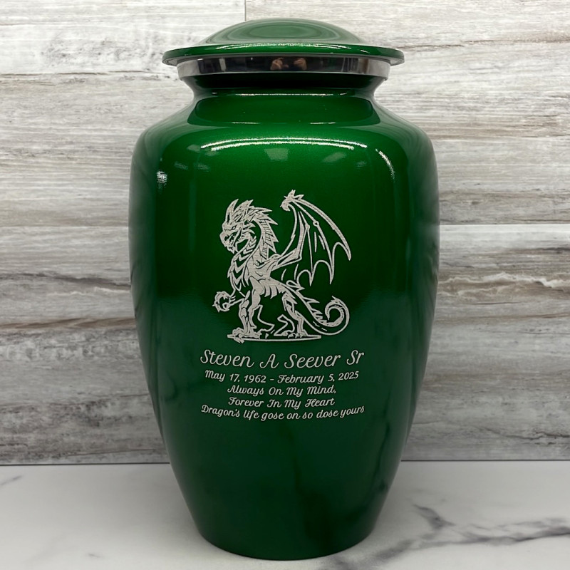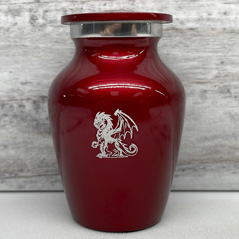 Choose a Dragon Keepsake Urn to create an intimate and personal memorial for family members or close friends. Bold, attractive colors offer sharp contrast with the engraved text and artwork.