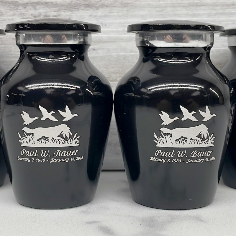 Choose an engraved keepsake urn to create an intimate and personal memorial for family members or close friends. Bold, attractive colors offer sharp contrast with the engraved text and artwork.