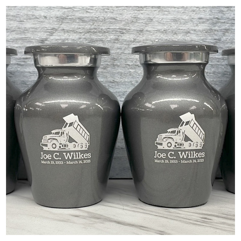 Very much pleased with the choice I made on your website. I searched the web for dump truck urns and this is what I was looking for. I appreciate your great service and products.