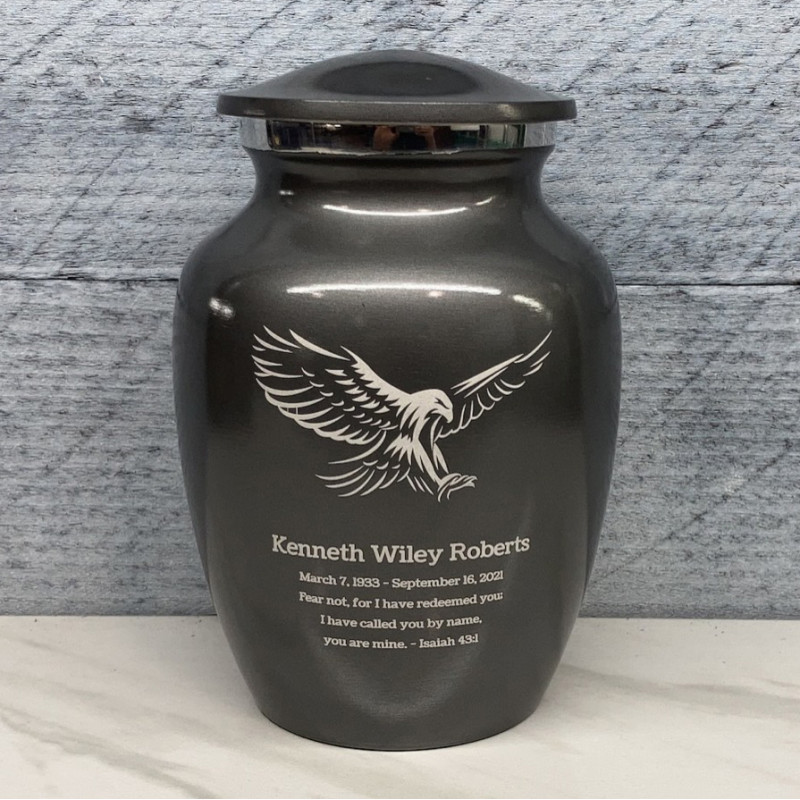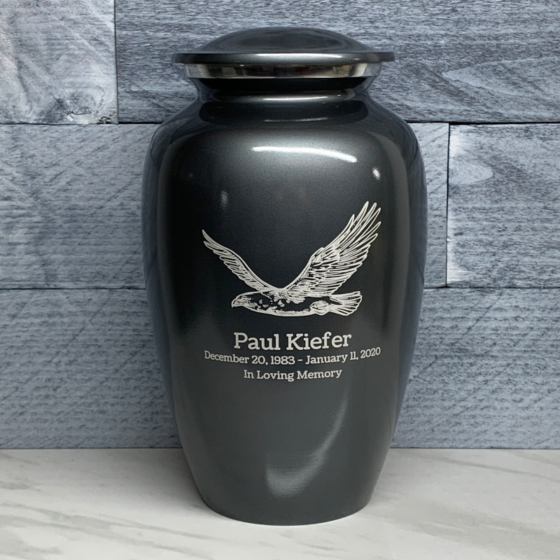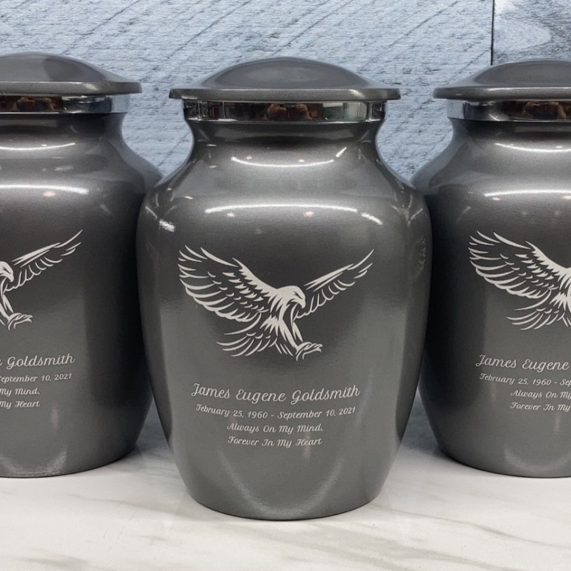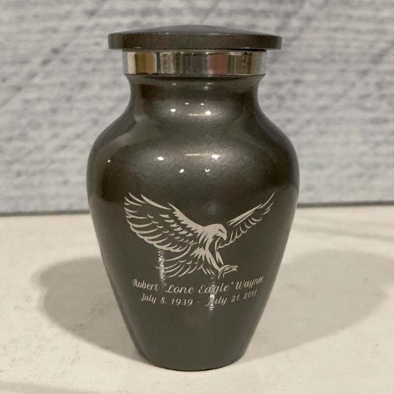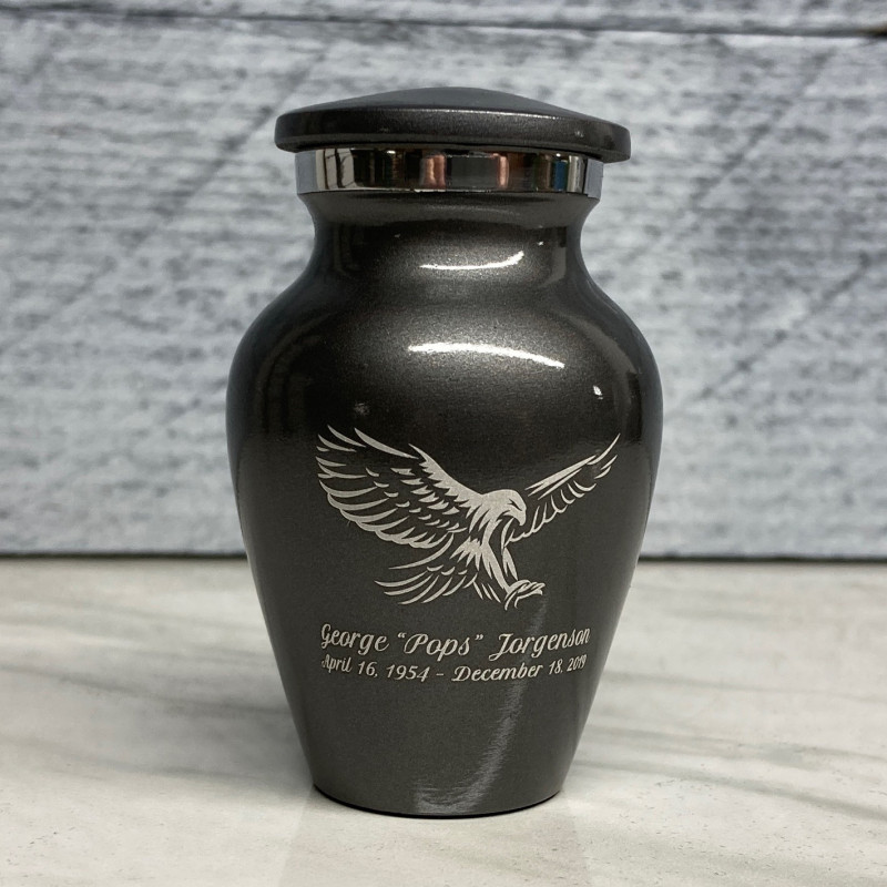 Eagle Keepsake Urn - Midnight Blue Eagle Keepsake Urn - Gunmetal Gray Eagle Keepsake Urn - Purple Luster Eagle Keepsake Urn - Shamrock GreenSizes