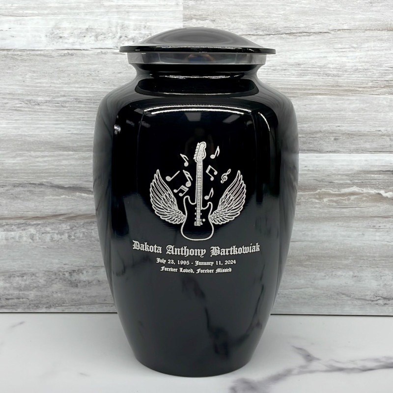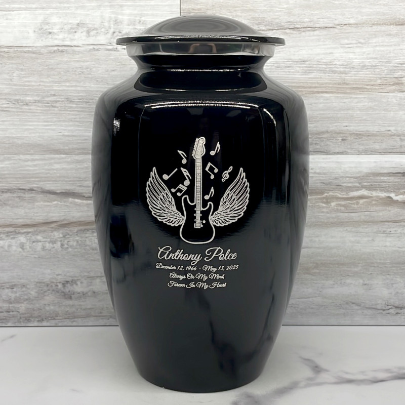 Electric Guitar Angel Wings Cremation Urn - Midnight Blue Electric Guitar Angel Wings Cremation Urn - Gunmetal Gray Electric Guitar Angel Wings Cremation Urn - Purple Luster Electric Guitar Angel Wings Cremation Urn - Shamrock Green Electric Guitar Angel Wings Cremation Urn - Ruby RedElectric Guitar Angel Wings Cremation Urn - Jet Black
