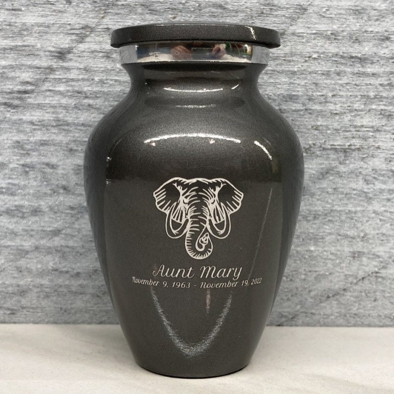 The Gunmetal Gray Elephant Keepsake Urn is an attractive and affordable way to provide each family member with personalized memorial that they can keep close and cherish. Optional engraving can make it even more unique.