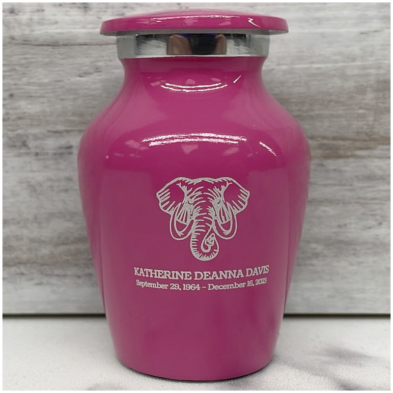 Choose an Elephant Keepsake Urn to create an intimate and personal memorial for family members or close friends. Bold, attractive colors offer sharp contrast with the engraved text and artwork.