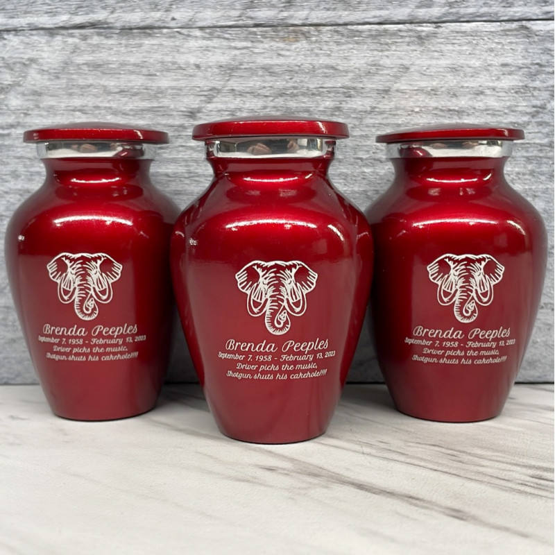Elephant Keepsake Urn - Midnight Blue Elephant Keepsake Urn - Gunmetal Gray Elephant Keepsake Urn - Purple Luster Elephant Keepsake Urn - Shamrock GreenElephant Keepsake Urn - Ruby Red