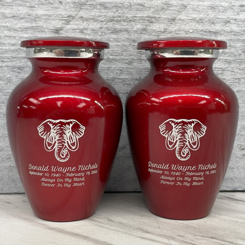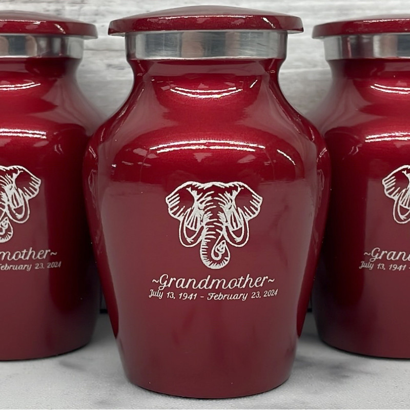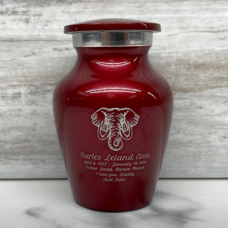 The Ruby Red Elephant Keepsake Urn is combines powerful elephant artwork with option engraving to create a special keepsake for close family and friends to cherish.