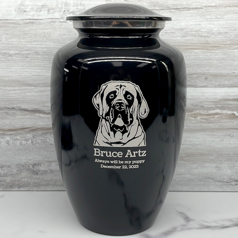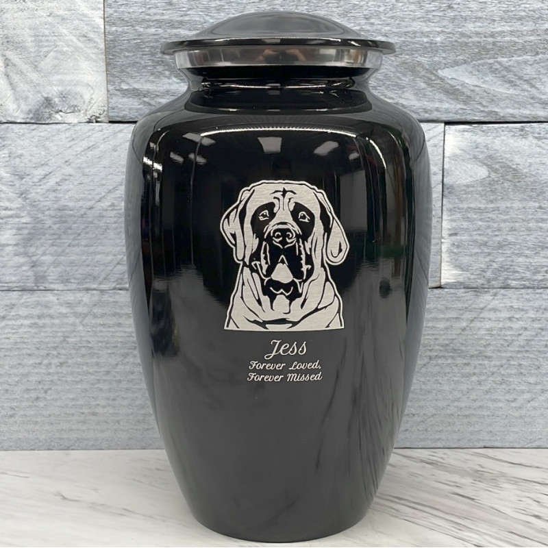 Extra Large English Mastiff Pet Cremation Urn - Jet Black