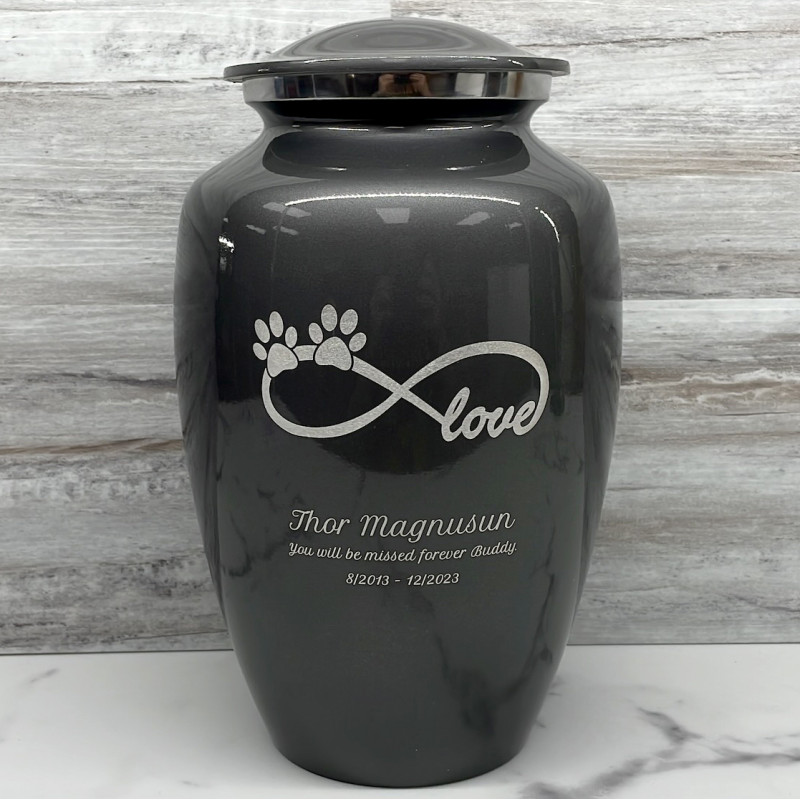 Extra Large Infinite Love Pet Cremation Urn - Midnight BlueExtra Large Infinite Love Pet Cremation Urn - Gunmetal Gray