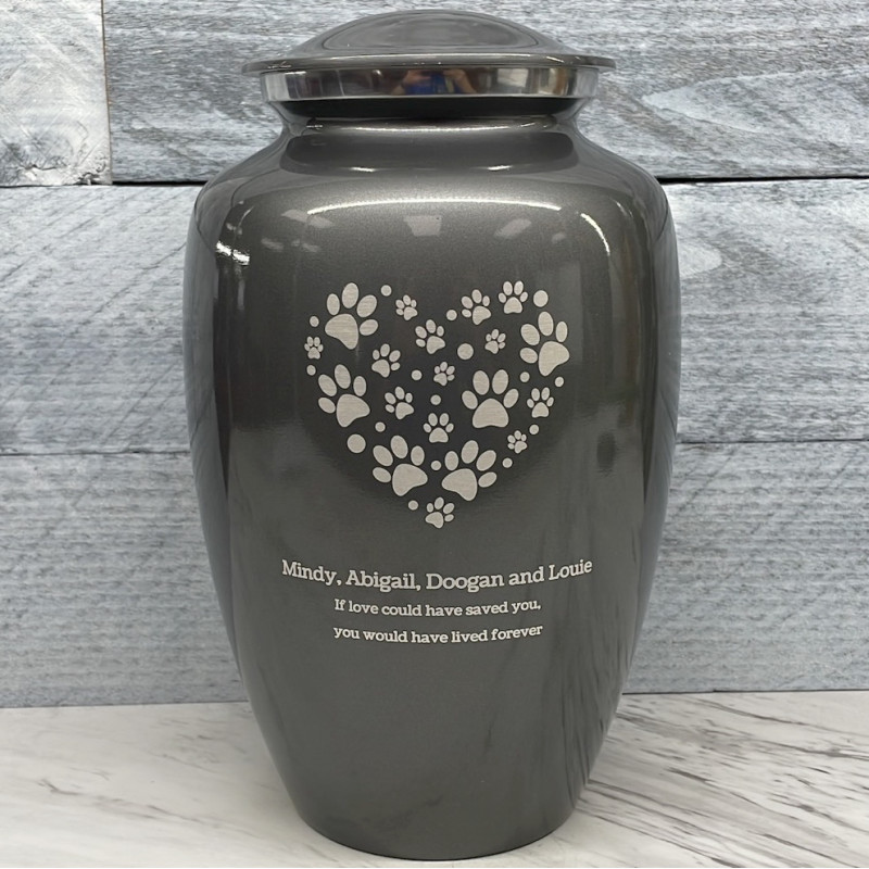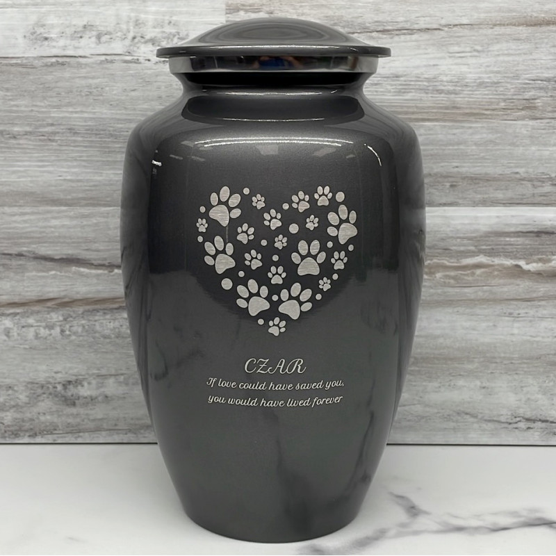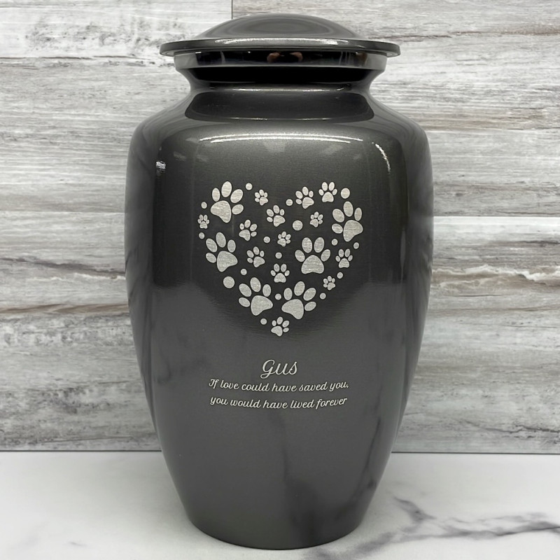 Extra Large Paw Print Heart Pet Cremation Urn - Gunmetal Gray