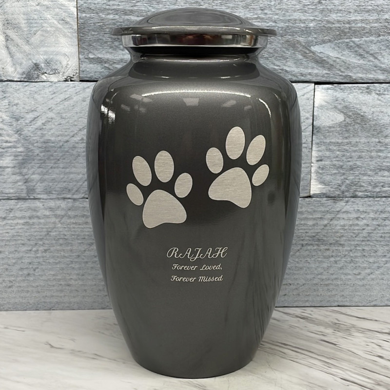 Extra Large Paw Prints Pet Cremation Urn - Gunmetal Gray