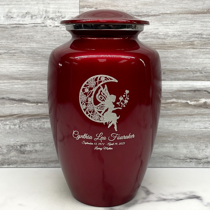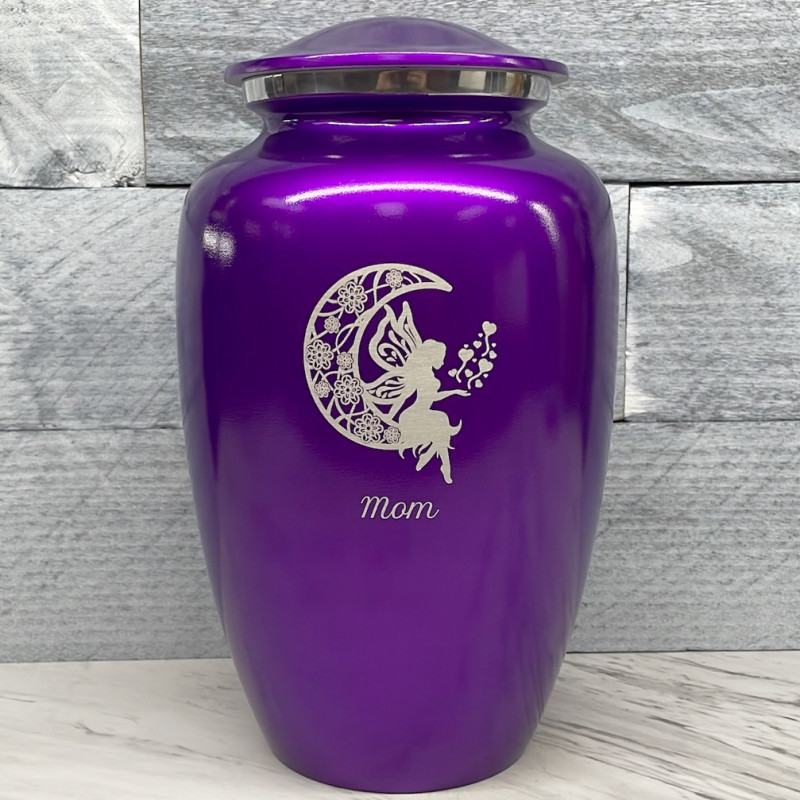 Fairy In the Moon Keepsake Urn - Midnight Blue Fairy In the Moon Keepsake Urn - Gunmetal Gray Fairy In the Moon Keepsake Urn - Purple Luster Fairy In the Moon Keepsake Urn - Shamrock Green Fairy In the Moon Keepsake Urn - Ruby RedSizes