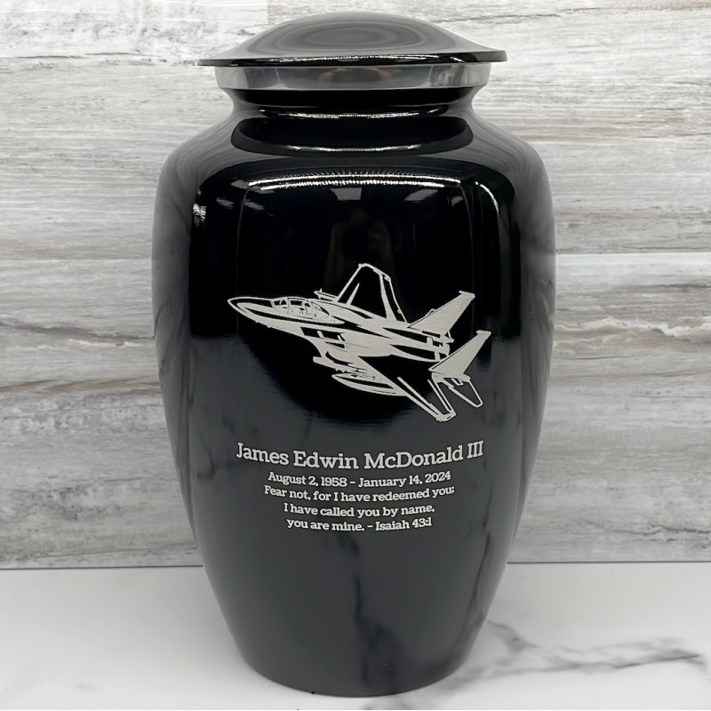 Fighter Jet Plane Cremation Urn - Jet Black