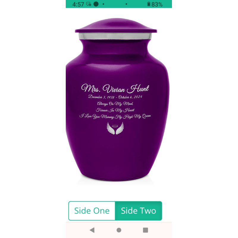 It was our honor to create this urn for you. Thank you for sharing your valuable feedback.