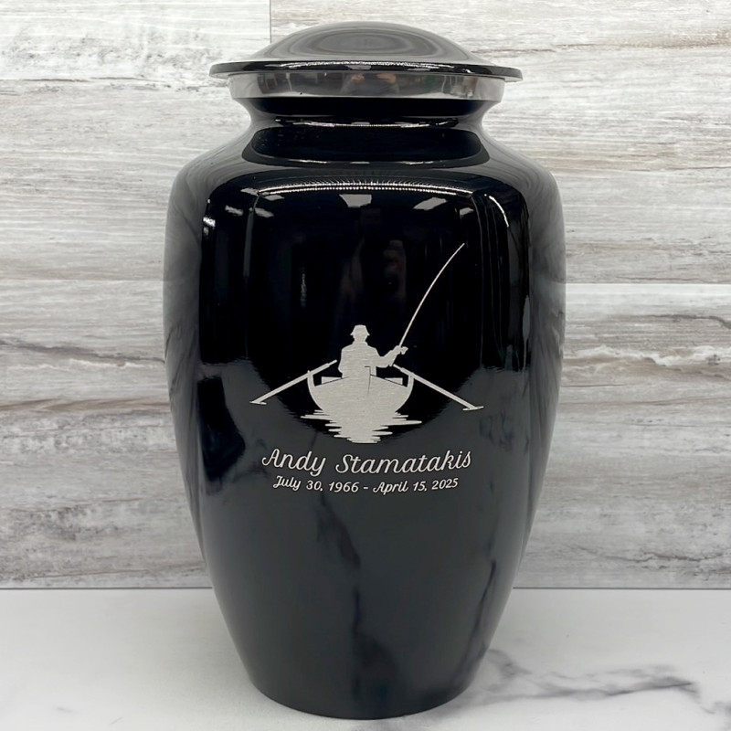 Choose a Fisherman Boat Cremation Urn to create a beautiful memorial that is sized to hold the entire remains of any adult. Bold, attractive colors offer sharp contrast with the engraved text and detailed artwork.