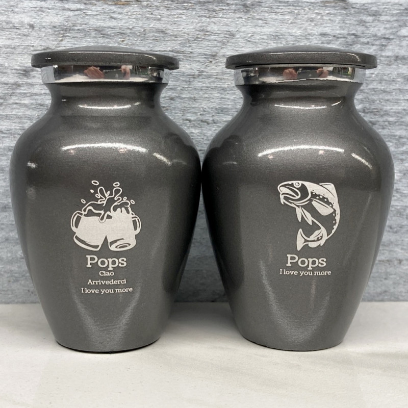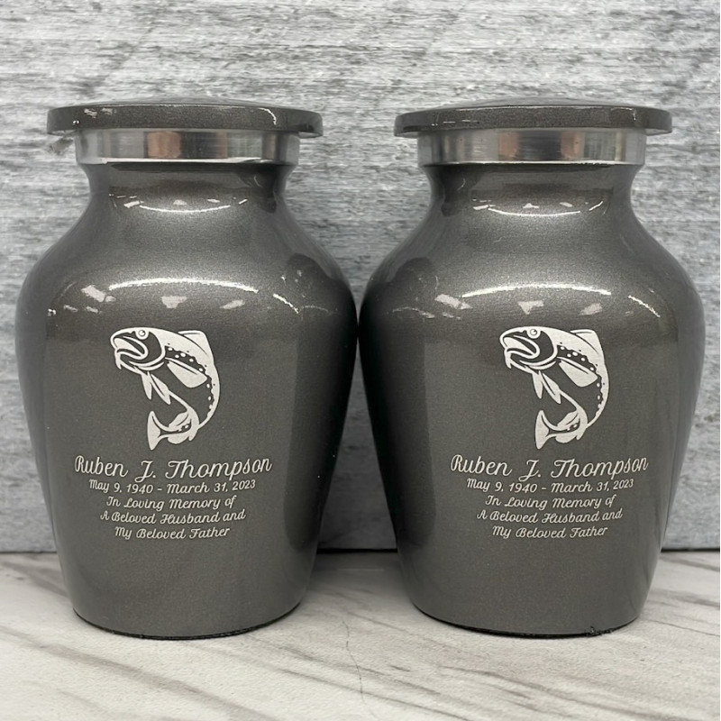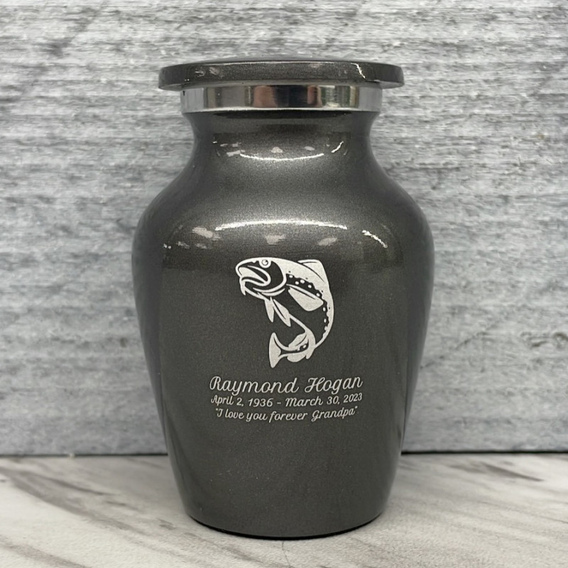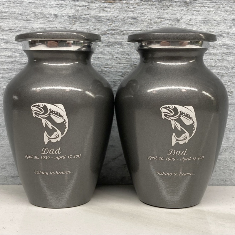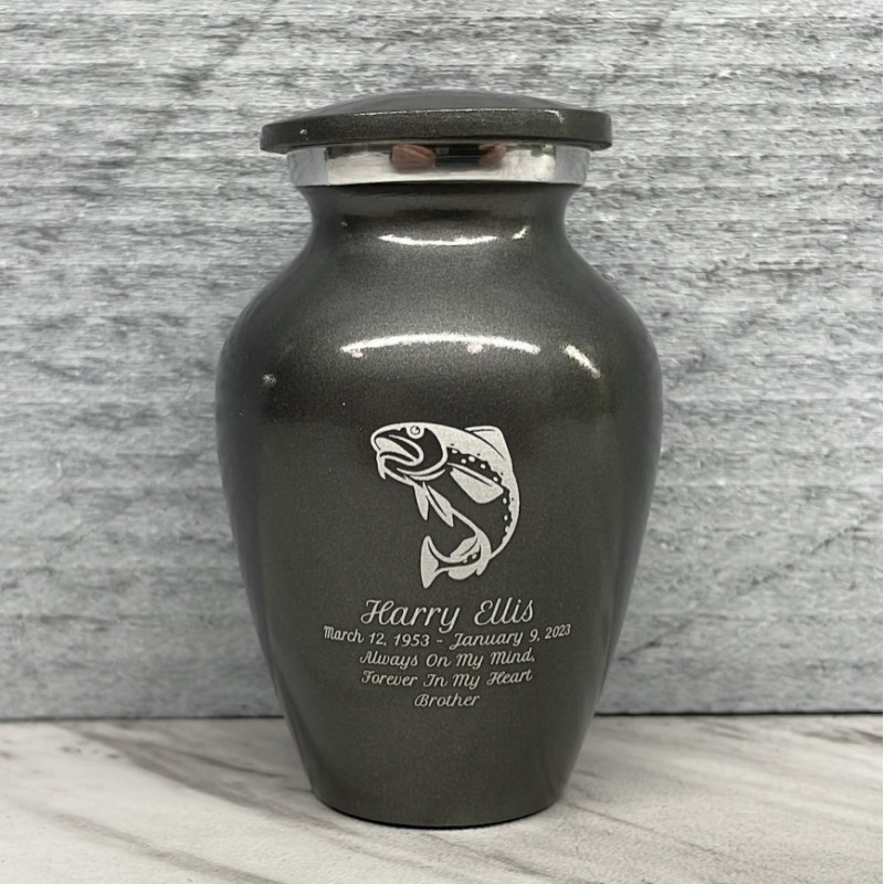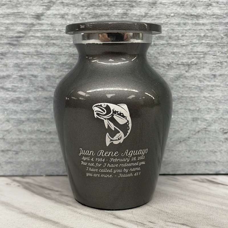 Choose the Gunmetal Gray Fishing Keepsake Cremation Urn to create a personal memorial for a loved one who always wanted to be out on the water, chasing that next big catch. Customize the urn with special engraving for each family member or close friend, creating memorials for each to hold close.
