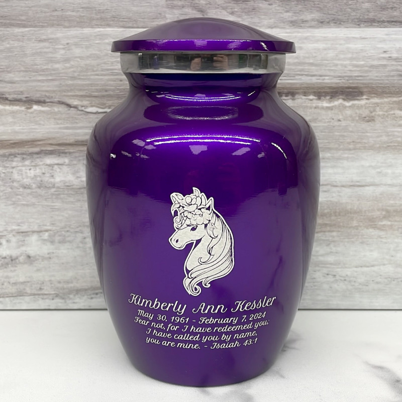 Floral Unicorn Sharing Urn - Midnight Blue Floral Unicorn Sharing Urn - Gunmetal GrayFloral Unicorn Sharing Urn - Purple Luster