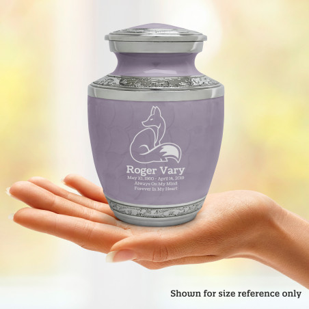 Select Fox II Sharing Urn - Regal Purple to create a personal memorial that is a step larger than a keepsake urn but more petite than a full size urn. Bold, attractive colors offer sharp contrast with the engraved text and detailed artwork.
